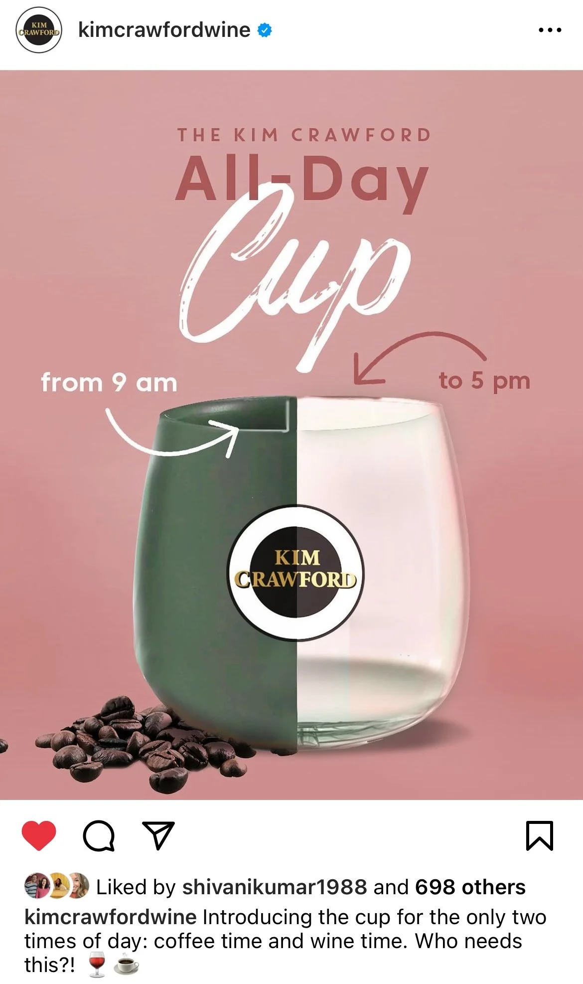 We teased the creation of a single cup, which would make it easier than ever for on-the-go Kim Crawford drinkers to enjoy their two favorite beverages: coffee and wine. In our launch post, we asked fans “Who needs this?!,” poking fun at the fact that the cup was too genius to be produced in our responses and prompting excited ones to DM us for a surprise (a Corkcicle tumbler).